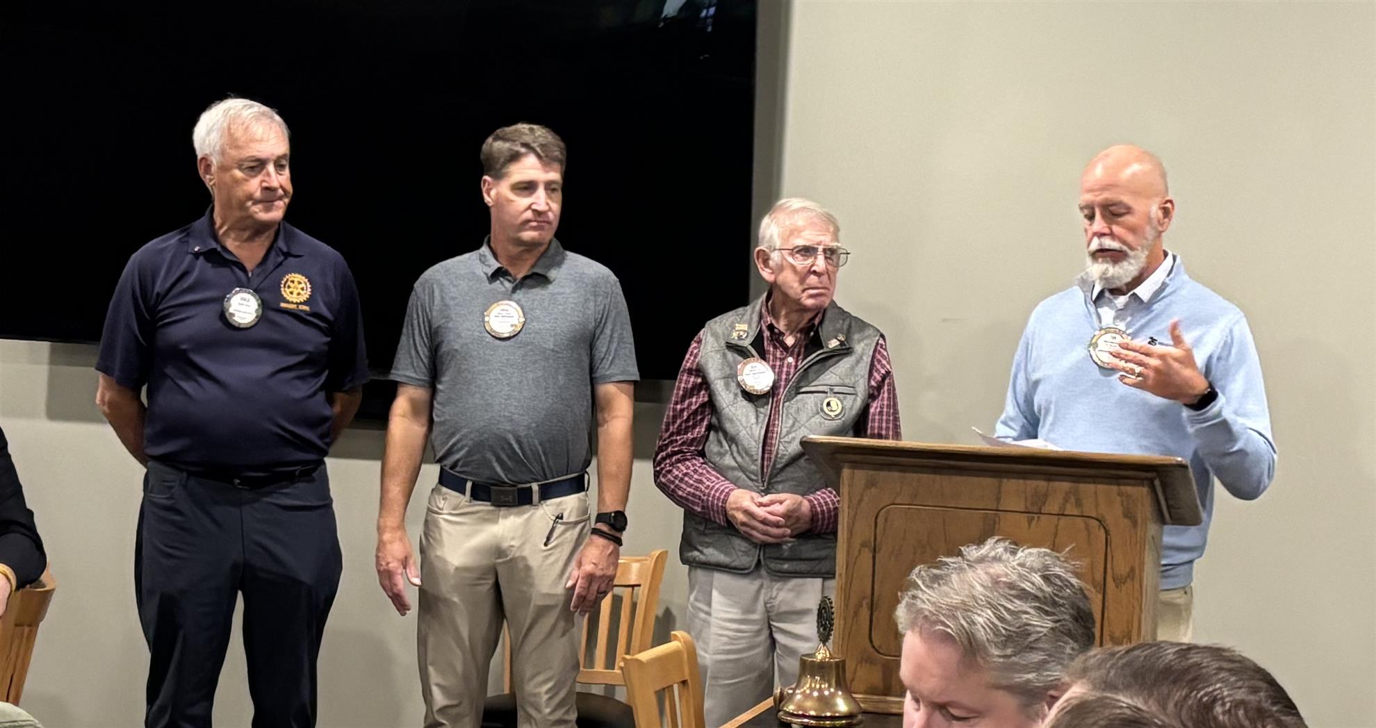 Five very special members, were recognized with a Paul Harris Fellowship on September 15th and 22nd. A Rotarian, or non Rotarian, is recognized as a Paul Harris Fellow when their contribution tor contribution made in their name, to the Rotary Foundation totaling $1,000. Additional recognition is given for each additional $1,000 contribution. These honors not only celebrates generosity but also highlights a commitment to Rotary’s mission of advancing world understanding, goodwill, and peace. Thank you, Jim, Kevin, Dale, Doug, and Rich for your contributions to support the Rotary Mission to provide service to others, promote integrity, and advance world understanding, goodwill, and peace through our fellowship of business, professional, and community leaders. The Club's Foundation Chair, Tim Hawkins had the honor of presenting the following Paul Harris Fellowships: